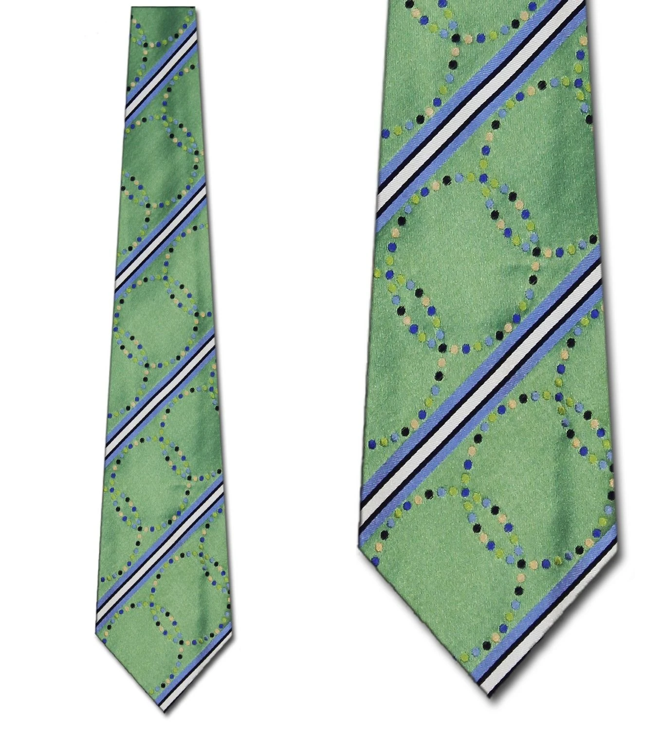 Code Red- Retro Circles And Stripes (Green) Ties Neckties