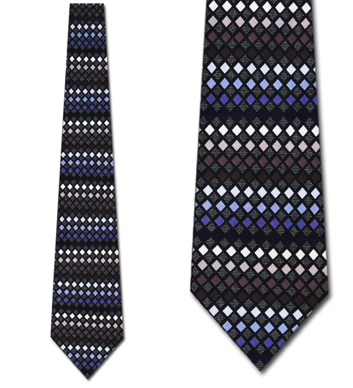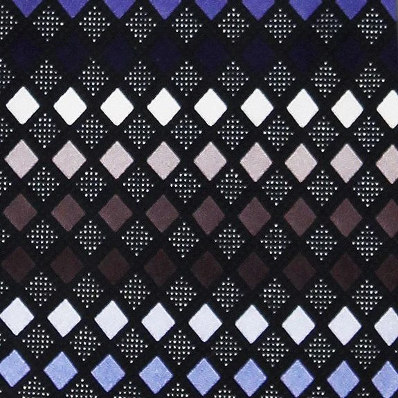 Extra Long. Giorgio Brutini neckwear is meticulously handcrafted using 100% pure silk. This tie features blue and gray diamonds on a black background.