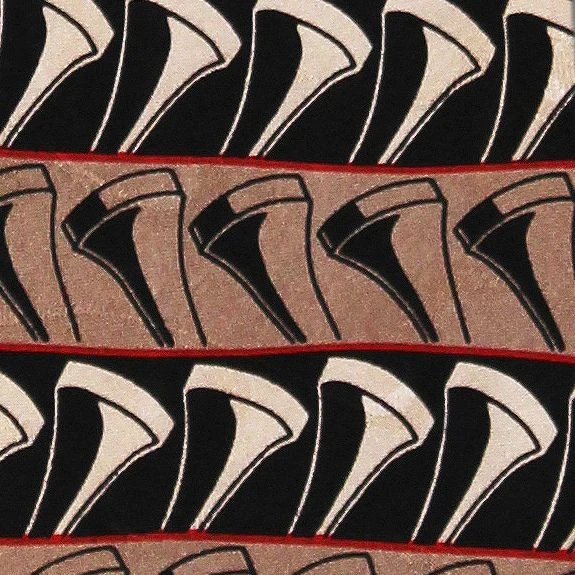 This tie features neutral tones with a alternating black and tan striped golf tee pattern. Crafted in 100% silk