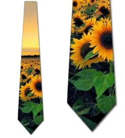 With this tie, youll be transported into quiet and serene nature scene. Catch the moment the sun is setting on this field of sunflowers. All Three Rooker brand neckties are crafted using 100% quality microfiber.